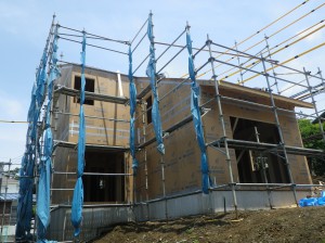 今回の建て方は工場製作のパネルで立ち上げました。広い場所があると出来るのですけどね。これから、内装大工ががんばって行きます。